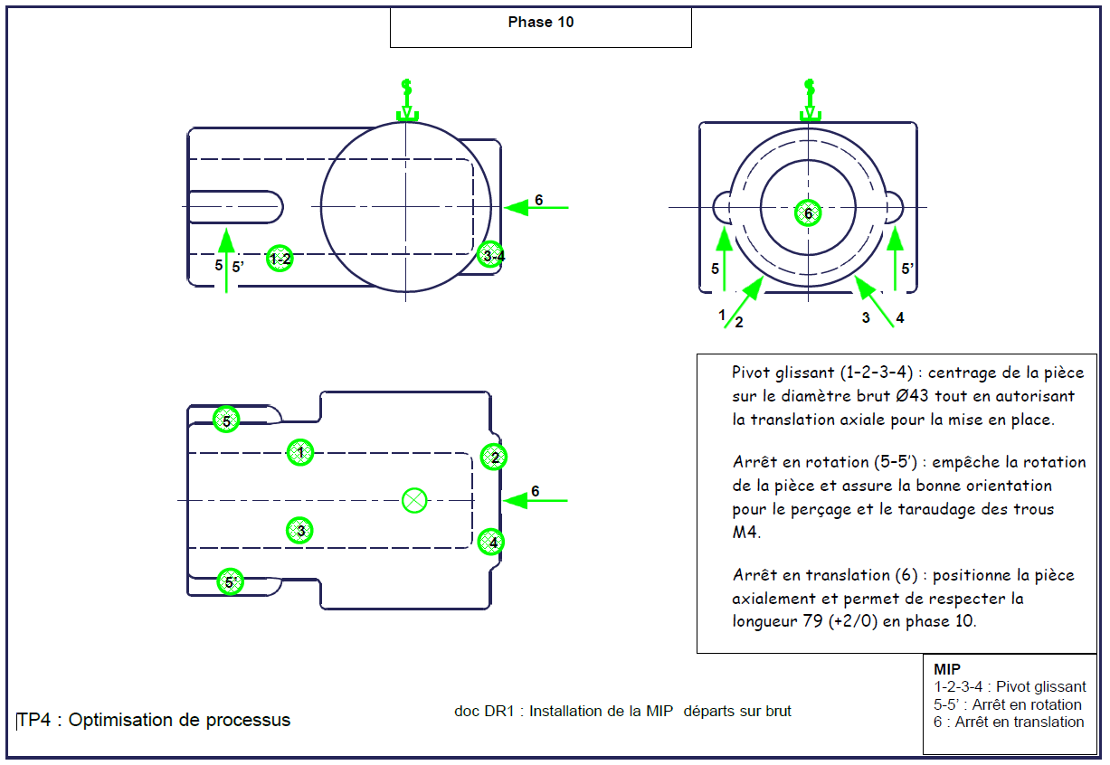 Dans le cadre du TP d'ingénierie des process, nous avons élaboré un avant-projet de fabrication en suivant une démarche méthodique d’industrialisation. À partir du modèle de pièce fourni, nous avons réalisé la MIP (Méthode d’Industrialisation du Produit), en identifiant les différentes phases d’usinage nécessaires à sa réalisation.