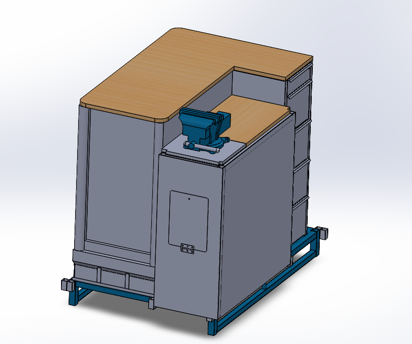 Ma mission a donc consisté à concevoir et fabriquer un établi répondant à leurs exigences : sécurisé, ergonomique, facilement transportable et permettant une organisation optimale des outils et pièces détachées.